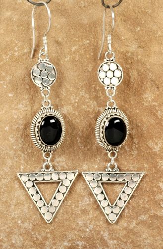 Ausgefallene Silber Ohrhänger / Ohrringe - Onyx