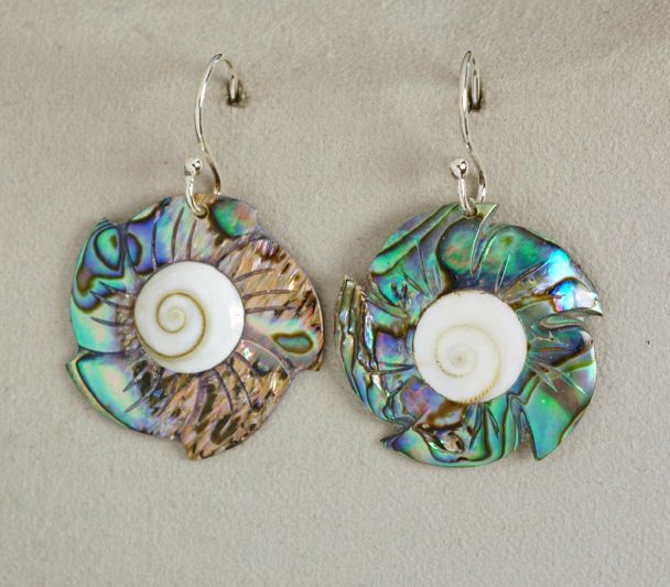 Dekorative Silber Ohrhänger - Auge des Shiva / Shiva Eye mit Paua Muschel / Abalone / Seeopal