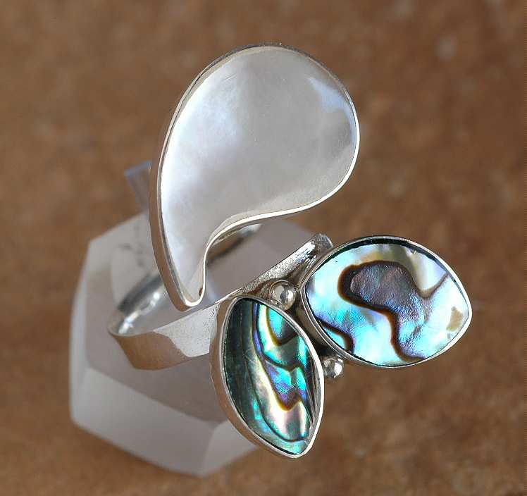 Extravaganter Silber Ring - Perlmutt mit Abalone / Paua Muschel / Seeopal