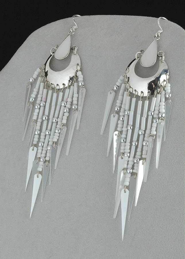 Dieses Modell ist aufwendig modern gearbeitet mit Muschelstücken, Acrylscheiben, Glasperlen und Silber.