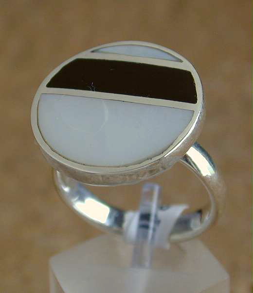 Extravaganter Silber Ring - Perlmutt mit Onyx
