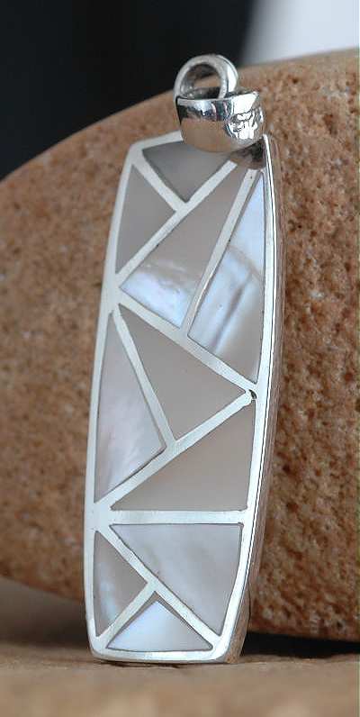 Dieses Modell ist modern gearbeitet mit Perlmutt Muschelstücken und Silber.