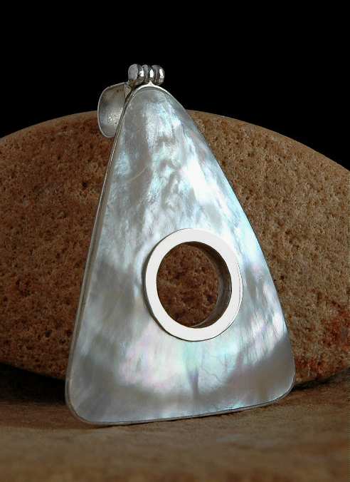 Dieses Modell ist mit einer schillernden Muschel und modern schlichter Silberarbeit gefertigt, in der Kombination kommt die schöne Muschel voll zur Geltung.