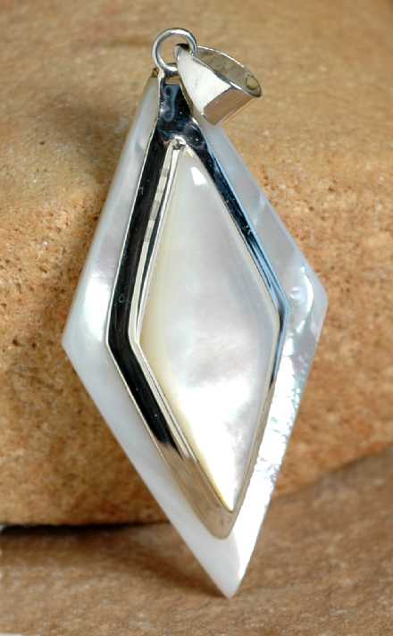 Dieses Modell ist mit einer schillernden Muschel und modern schlichter Silberarbeit gefertigt, in der Kombination kommt die schöne Muschel voll zur Geltung.