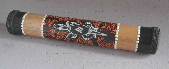 Der Körper besteht aus Bambus, schön bemalt in Dot Paint - Technik.