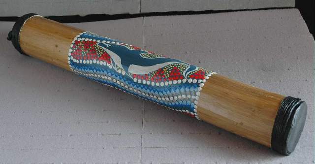 Der Körper besteht aus Bambus, schön bemalt in Dot Paint - Technik.