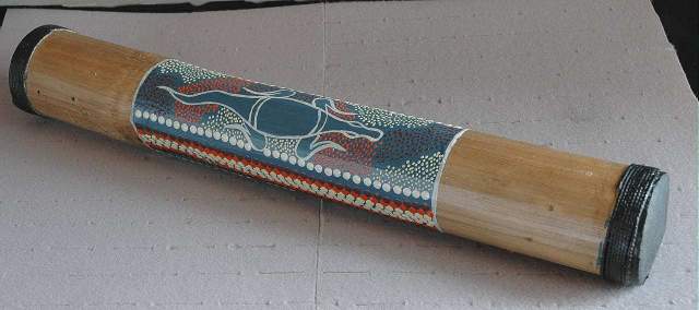 Der Körper besteht aus Bambus, schön bemalt in Dot Paint - Technik.