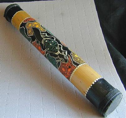 Der Körper besteht aus Bambus, schön bemalt in Dot Paint - Technik.