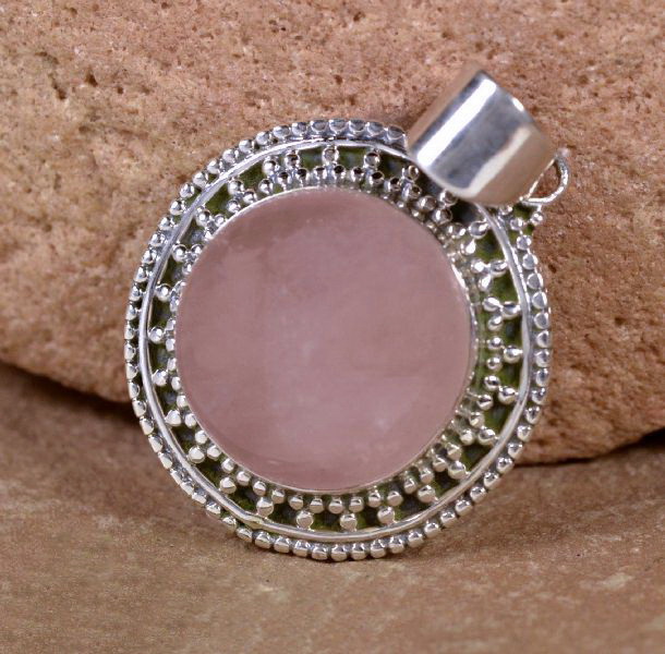 Dieses Modell ist sehr aufwendig mit dem schönen Rosenquarz handgearbeitet, das Ganze fügt sich zu einer stimmigen Komposition.