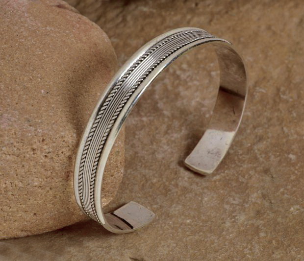 Massive Silber Armspange / Armreif mit schönem Muster