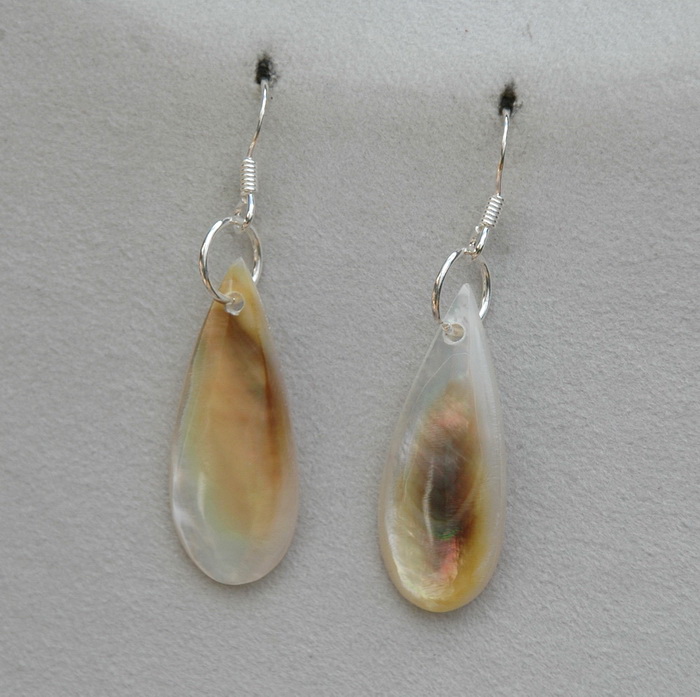 Hier sehen Sie Ohrhänger aus schöner Perlmutt Muschel gearbeitet.