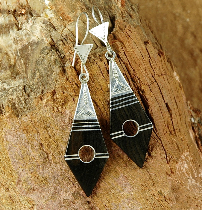 Schöne Tuareg Ohrringe - Ebenholz und Silber