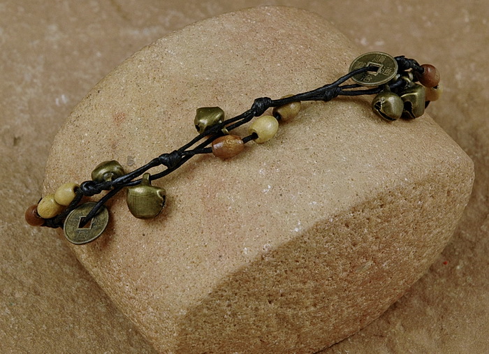 Schwarze Fußkette / Fußkettchen mit Münzen & Glöckchen
