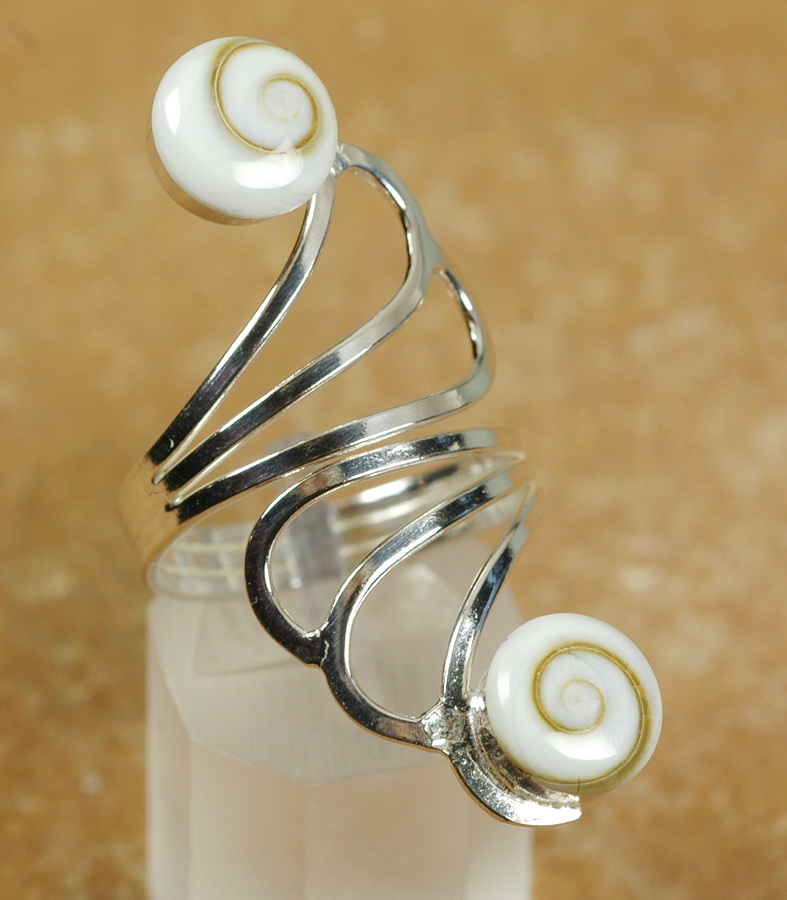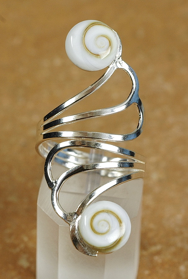 Der Ring ist komplett aus glänzendem Silber 925 und oben offen, daher in der Größe verstellbar.