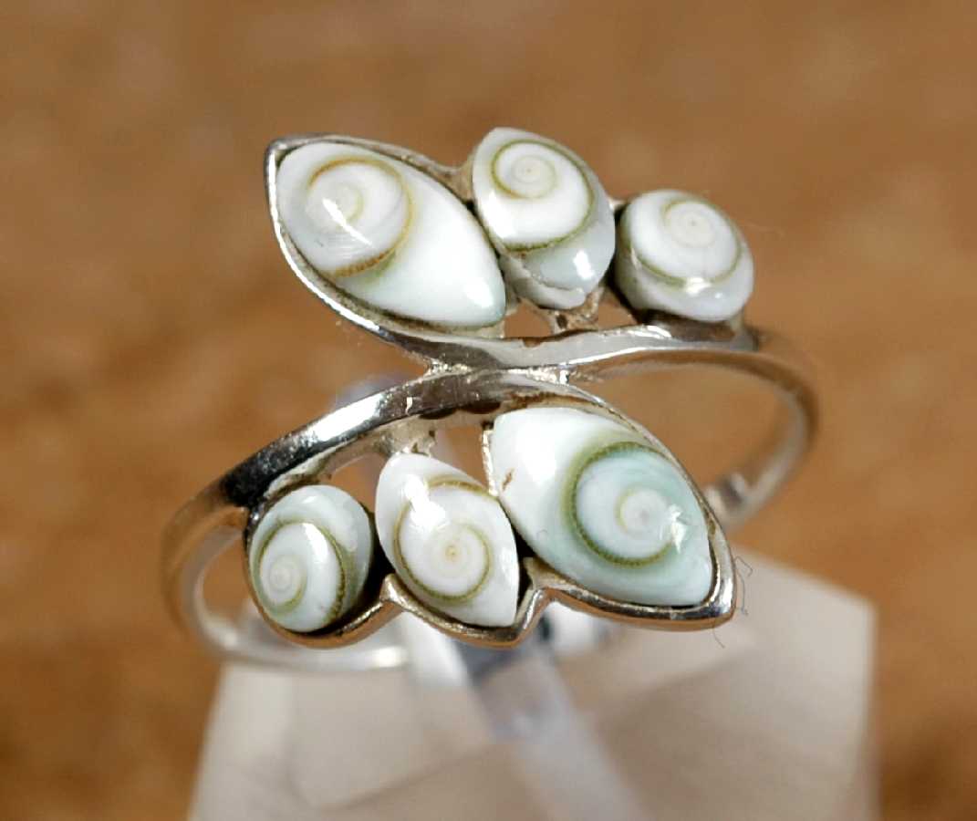 Dieses Modell ist mit 6 Shiva Augen und modern schlichter Silberarbeit gefertigt, in der Kombination kommt die schöne Muschel voll zur Geltung.
