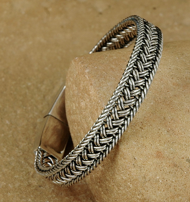 Das ausgefallene Armband ist aufwendig gearbeitet mit einer schönen Flechtarbeit und einem sehr dekorativen Verschluß.