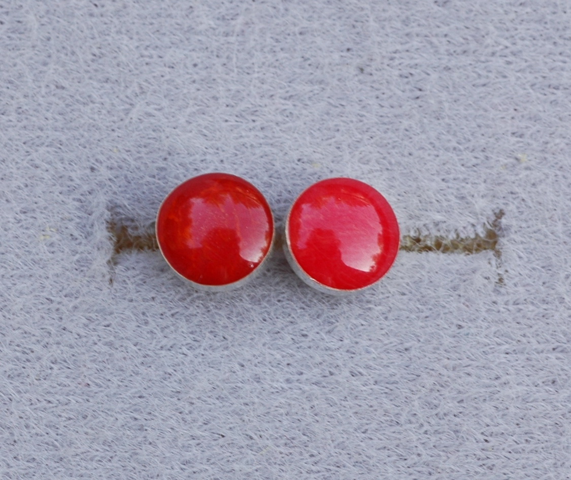 Dieses Ohrsteckerpaar ist schlicht gefasst mit schönem roten Stein in Silber 925. Ohrsteckerstift und Gegenstecker sind ebenfalls aus Silber 925.