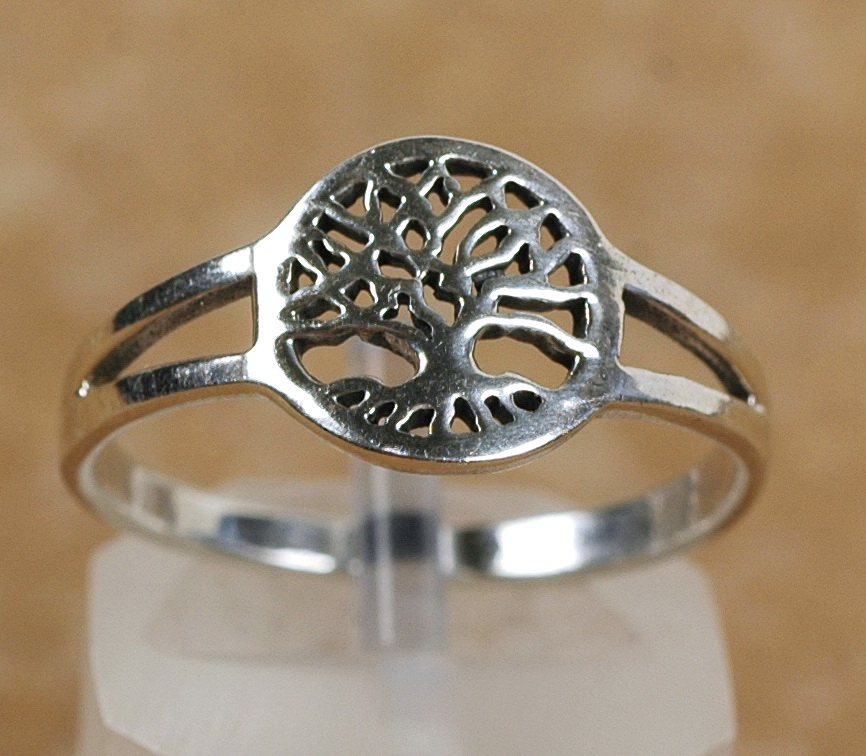 Sie sehen hier einen filigran gearbeiteten Ring aus massivem Silber, mit einem schönen Lebensbaum Motiv.