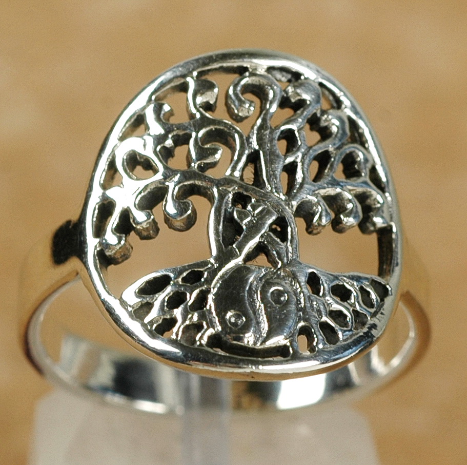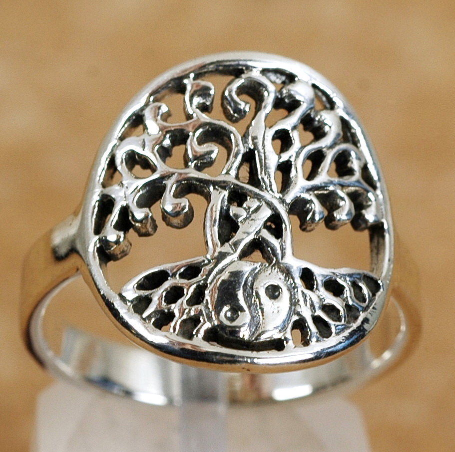 Sie sehen hier einen filigran gearbeiteten Ring aus massivem Silber, mit einem schönen Lebensbaum Motiv.
