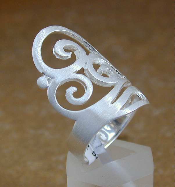 Sie sehen hier einen schön gearbeiteten Ring aus mattiertem Silber, mit einem ausgefallenem Design.