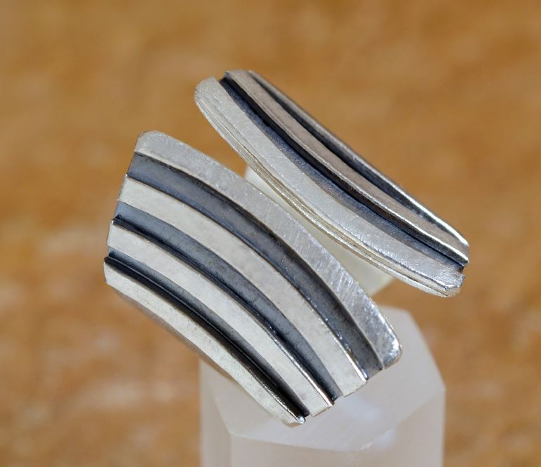 Dieses ausgefallen gearbeitete Modell besticht durch die klare Form und ist massiv aus Silber handgefertigt.