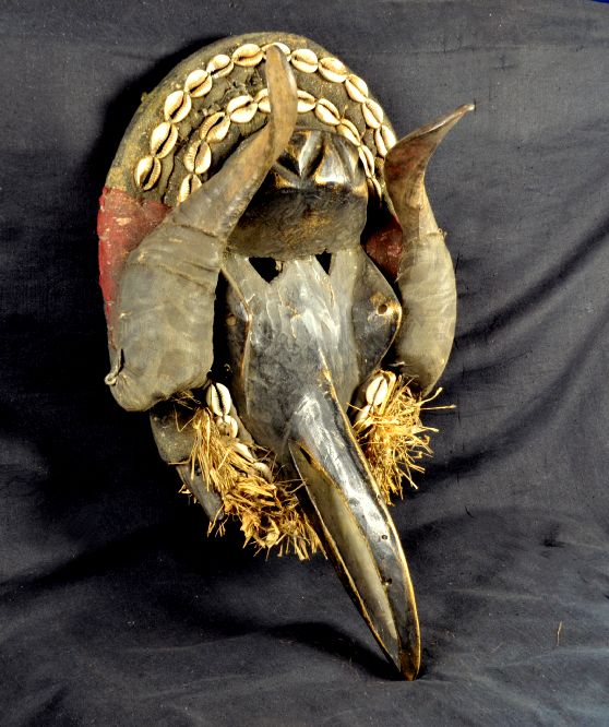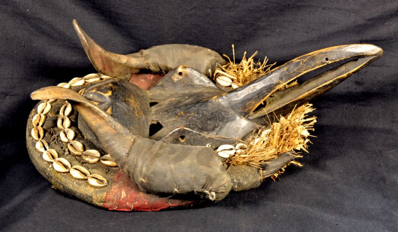 aus Elfenbeinküste / Liberia - mit Leder und Kaurimuscheln, sowie Hörnern verziert