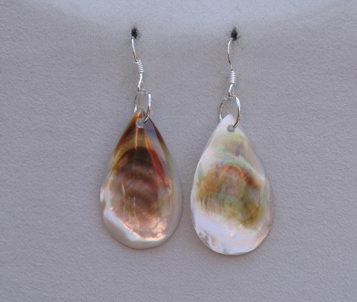 Hier sehen Sie Ohrhänger aus schöner Perlmutt Muschel gearbeitet.
