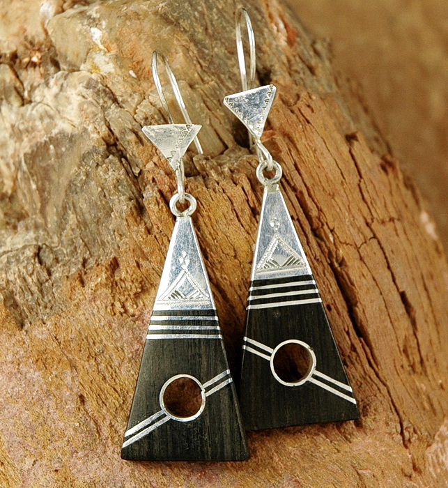 Tolle Tuareg Ohrringe - Ebenholz und Silber