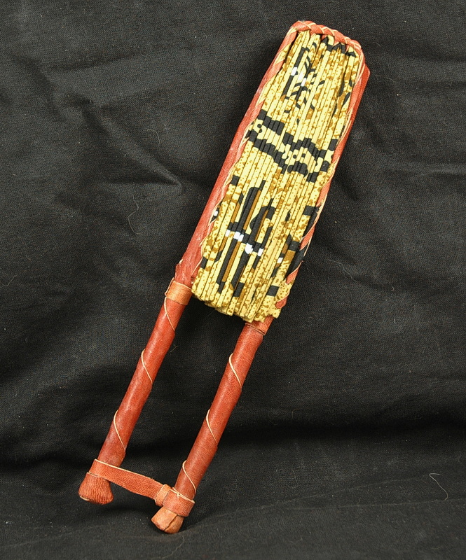 Er ist aus afrikanischem Baumwoll Stoff hergestellt und hat schön mit Leder umwickelte Griffe.