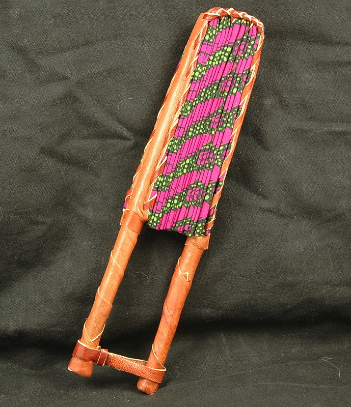 Er ist aus afrikanischem Baumwoll Stoff hergestellt und hat schön mit Leder umwickelte Griffe.