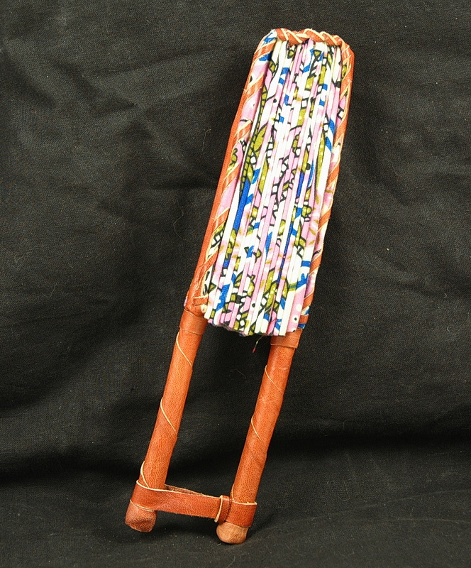 Er ist aus afrikanischem Baumwoll Stoff hergestellt und hat schön mit Leder umwickelte Griffe.