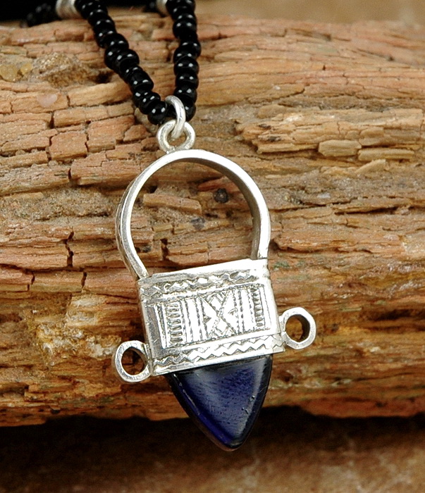 Tuareg Kreuz In Gall / Ingal blau - Tuaregschmuck aus Silber