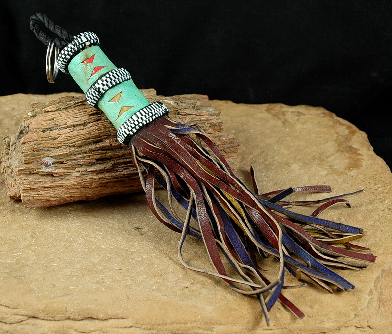 Dieser farbenfrohe und außergewöhnliche Schlüsselanhänger - Quaste - ist aus Ziegenleder gefertigt.