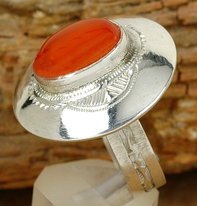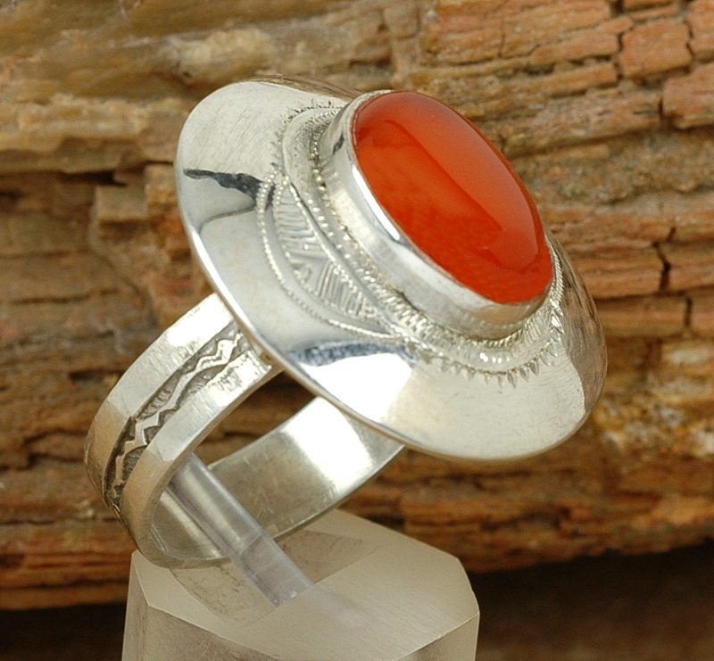 Tuaregschmuck - Großer Silber Ring mit rotem Achat