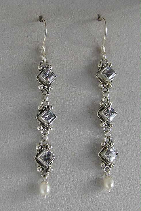 Dekorative Silber Ohrhänger / Ohrringe - Zirkonia mit Süßwasser Perle